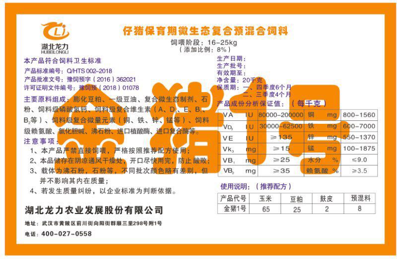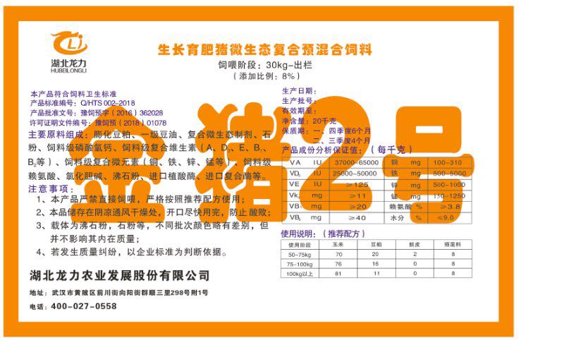 湖北龍力農業發(fā)展股份有限公司坐落于武漢市黃陂區前川街向陽街群順三里298號附1號。公司成立于2014年6月,公司自成立以來把“創(chuàng)全球最大養豬綜合服務”為企業愿景。致力于打造教保料品牌”作為公司發(fā)展的明確目標。公司一直致力于豬營養的研究和開發(fā),積極與國內外高校和科研機構合作,推廣養豬技術、動物營養新概念,向世界農牧企業學習與合作。公司采用國內先進的生產工藝,選擇高精度電子配料秤,高均勻度、無殘留混合機等先進設備....